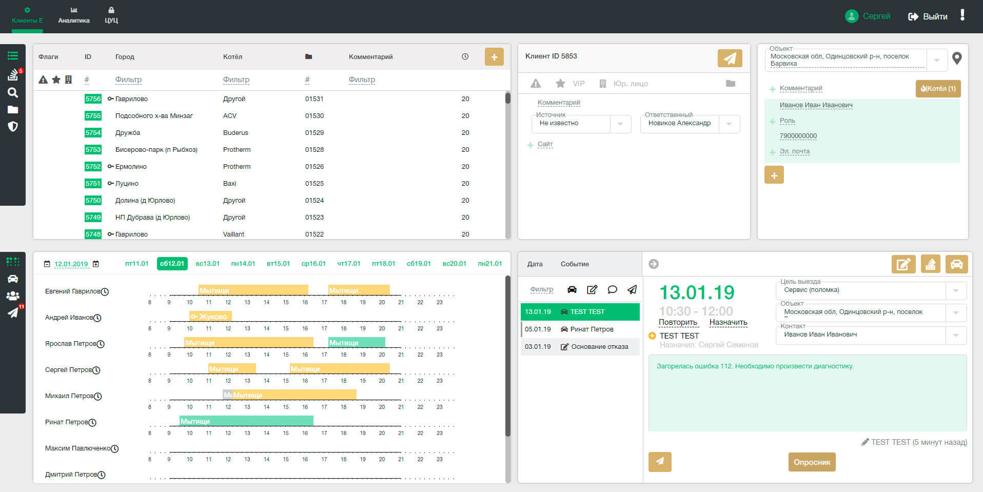 Более 3-х лет система работает и оттачивается у одного из лучших сервисов по котельному оборудованию в Москве и Московской области.